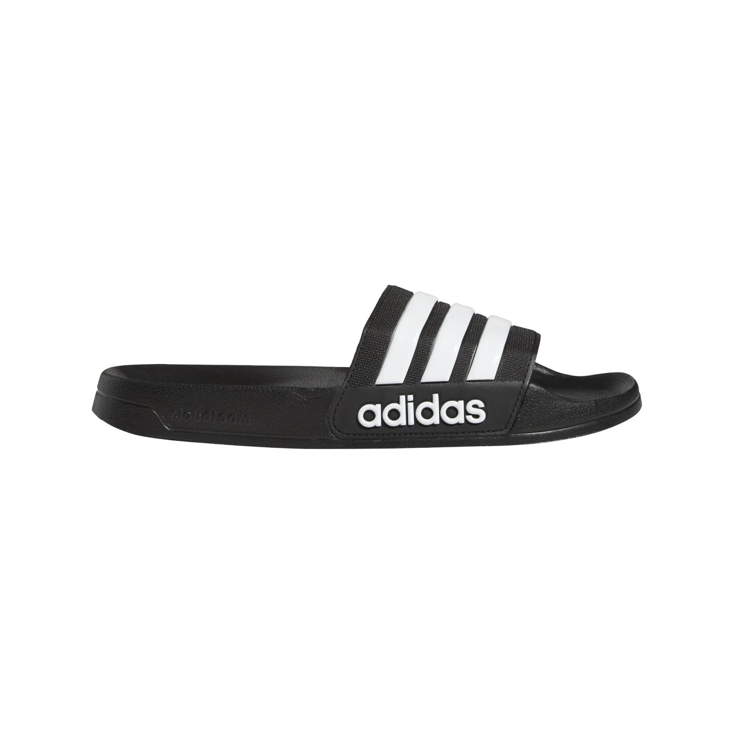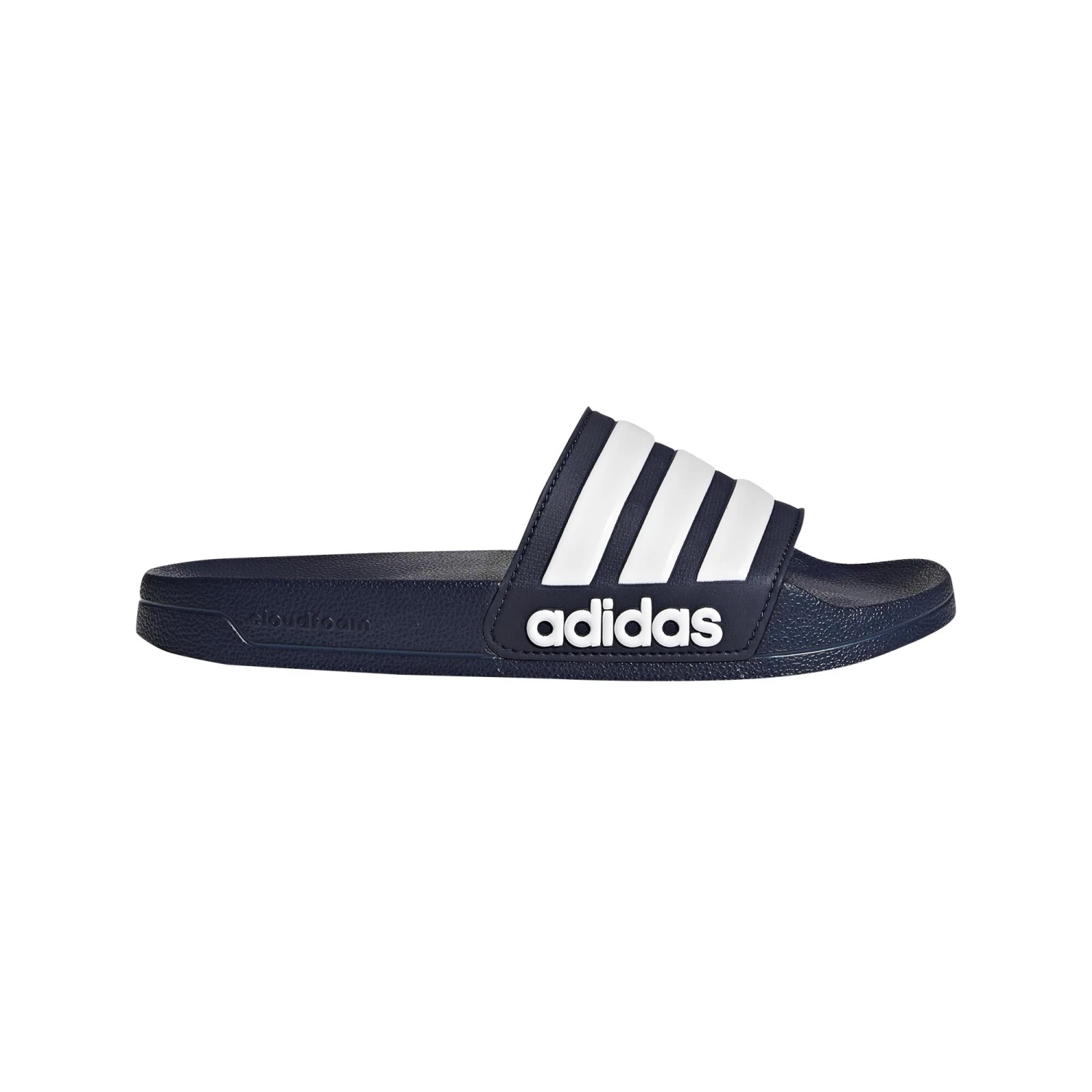Shower-ready slides with a soft, contoured footbed. Slip on and go! These slides mix 3-Stripes style with a comfortable cloudfoam unitsole, which combines the midsole with the outsole for superior cushioning. Finished with a bold linear logo on the side.